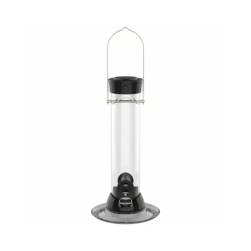 DROLL YANKEES ONYX CLEVER CLEAN 13" Sunflower Bird Feeder with Easy Opening. The world's cleanest feeders just got cleaner! This elegant and innovative feeder comes with a removable base that comes apart and reassembles in seconds for the fastest cleaning ever. A convenient one-touch opening allows the feeder to be filled with one hand even when hanging. The newly added seed tray attracts a greater variety of birds. The cap, base and ports are powder-coated in a striking black. The 12 in. UV-stabilized tube keeps seed visible and is reliably durable. The interior unobstructed port configuration allows for smooth seed flow and easy brush cleaning. Comfort perches attract a wider variety of birds. Backed by the Droll Yankees Lifetime Warranty against squirrel damage.