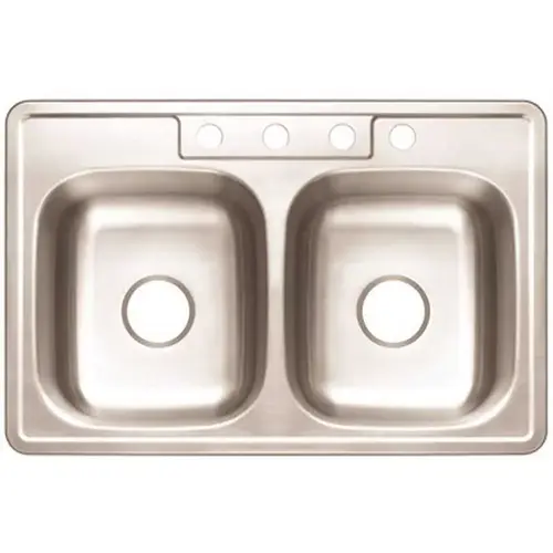 The Premier drop in kitchen sink is made of durable 22-Gauge brushed stainless steel. The sink's two basins provide long-lasting use, and they are conveniently split for multitasking. Sound insulation reduces waste disposal and water noise to help keep your kitchen quiet while you work.
