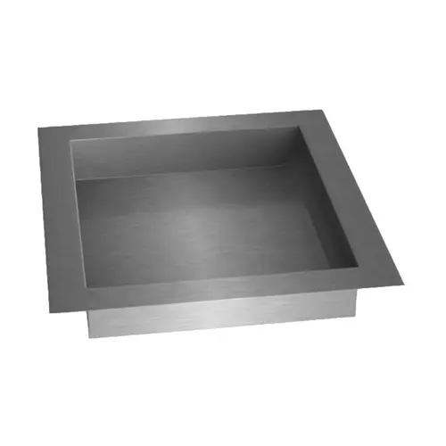 The Non-Ricochet Drop-In Deal Tray is designed for secure transaction handling at service counters in commercial and institutional environments. This drop-in deal tray allows cash, documents, and small items to be passed between staff and customers while maintaining separation at transaction windows or counters. This bullet resistant deal tray meets Level 3 requirements and features a non-ricochet internal design. The curved inner profile is shaped to help retain a projectile inside the tray or guide it upward toward protective glass, depending on the angle of entry. This design helps limit uncontrolled deflection during impact and supports safer transaction counter layouts. The tray is manufactured from stainless steel and finished in brushed stainless steel, making it suitable for secure counter installations. Overall dimensions measure 12" width x 12" depth x 2" height, allowing the tray to fit standard countertop cut-outs. This is a drop-in tray and requires counter fabrication before installation. Cut-out information is available to support proper preparation. No drain holes are included, making the tray suitable for controlled interior environments. An easy-out radius on the customer side allows smoother item transfer during daily transactions. Installation instructions are included. This deal tray is commonly used in banks, ticket counters, secure offices, and transaction windows where controlled pass-through is required.