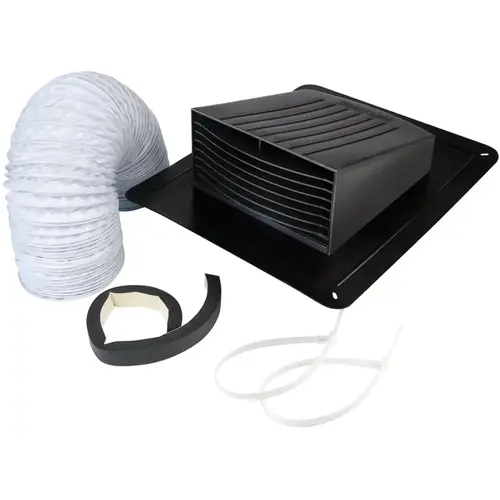 Includes: 4 in Black Roof Exhaust Cap 4 in x 5 ft Vinyl Duct 3 to 4 in Foam Adapter (2) Plastic Adjustable Clamps