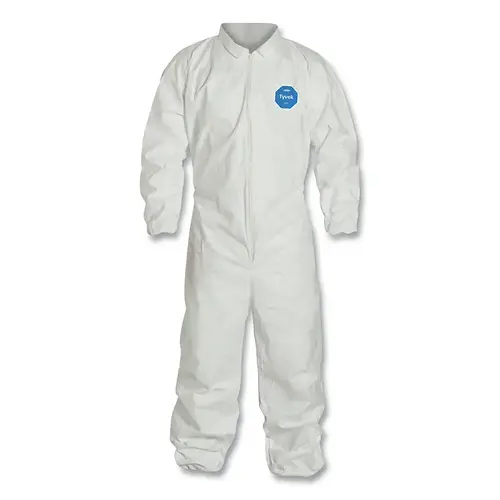Tyvek  400 Coverall, Serged Seams, Collar, Elastic Waist, Elastic Wrists and Ankles, Zipper Front, Storm Flap, White, 5XL - pack of 25