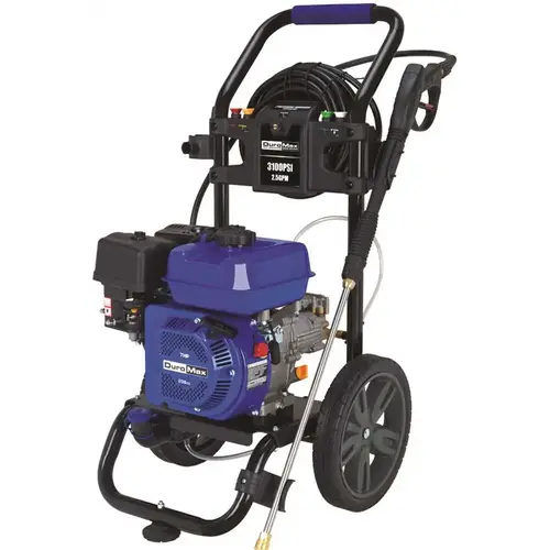 Blast away dirt and grime with the Duromax XP3100PWT Turbo Pressure Washer. It delivers 3,100 psi of cleaning power at 2.5 GPM, which is more than enough to tackle any job you throw at it. It also has a detergent reservoir built-in to the unit which helps to deliver a steady flow of cleaning agents into the output stream. Simple to use and perfect for cleaning driveways, gutters, sidewalks, stucco, roofing and more. The power behind this unit is delivered from a 208cc Duromax Engine that feeds into an Axial Cam Pump providing high pressure and consistent output. The 25 ft. non-marking hose reduces hassle from tangling and kinking while delivering reliable performance every time. Well-built and carefully designed, the XP3100PWT is rugged enough to withstand the outdoors while also being easy to move around. The comfort grip handle and oversized wheels make moving and lifting the Pressure Washer an effortless task.