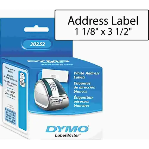 DYMO Corporation 10137601 ADDRESS LABELS, 1-1/8 X 3-1/2, WHITE