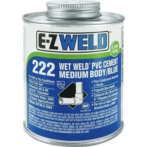 E-Z WELD INC. 16810088 PVC Cement Wet Weld 222 Medium Body Blue 1/4-Pint