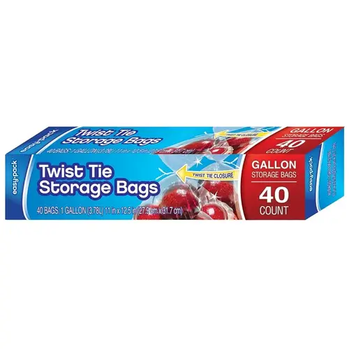 Easy Pack Storage Bag, 1 gal Capacity, Twist Tie Closure