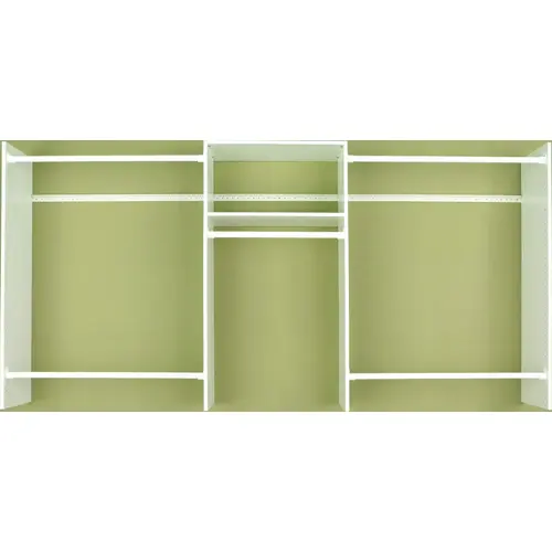 Includes: (4) 48 in Vertical Panels (2) 24 in Shelves (4) 35 in Wardrobe Rods and Ends (1) 24 in Wardrobe Rod and Ends (2) 48 in Easy Track Rails