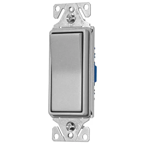 Ultrasonic welding and integrated construction of the strap and body. Backwire clamps on the side terminals for installation of #12 and #14 wire. Thermoplastic rocker, top and back body are virtually unbreakable. Screws accept slotted, Phillips and Robertson head tools for installation in both the USA and Canada. Longer, wider strap provides 40% more contact area to wall board. Virtually eliminates floating installations. Built-in wire stripper for #12 and #14 wire. Stippled ground screw standard. 15 A, 120/277 VAC rating for fluorescent lighting fixtures typical in commercial applications. Push in terminals accept #14 solid wire only. Temperature rating of -20 to 60 deg C. Meets flammability requirements per UL 94, 6504, V2 rated, VO rated. UL and cUL listed, meets all UL20 requirements.