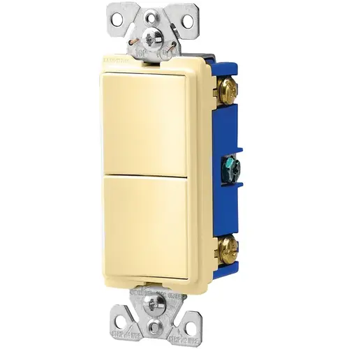 Commercial-grade - decorator combination switch or receptacle back and side wire feature the decorator design for easy, smooth actuation of the rocker panels. 120/277V/AC rating is ideal for incandescent or fluorescent lighting fixtures. Ultrasonic welding and integrated construction of the strap and body provide great ground integrity even under heavy use.