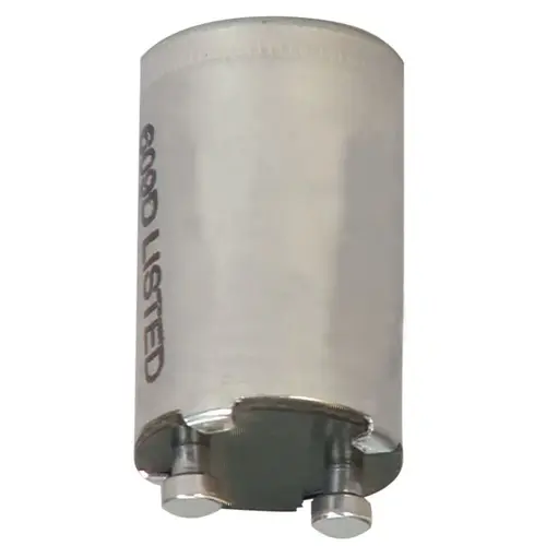Fluorescent starters - condenser type all-purpose two-terminal standard starter accurately timed to combine starts with long bulb life. For use where lights are turned on more than 5X daily. Also in devices where bulb life expectancy is 2 years or less.