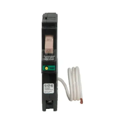 Eaton's Arc Fault Circuit Interrupters (AFCIs) use advanced electronic technology to reduce fire hazards in electrical circuits, including connected cords. They meet the requirements of the UL Standard for Safety, UL 1699 for devices that reduce the effects of persistent arcing faults that may pose a risk of fire under certain conditions. Arcing creates high intensity heating at the point of the arc resulting in burning particles that may over time ignite surrounding material, such as wood framing or insulation. The CHFCAF120 is a 20 Amp combination type breaker that includes all of the protection of the branch feeder, plus it directly detects persistent low current arcing faults down to 5 Amp to efficiently protect against fire hazards in the cords connected to outlets.