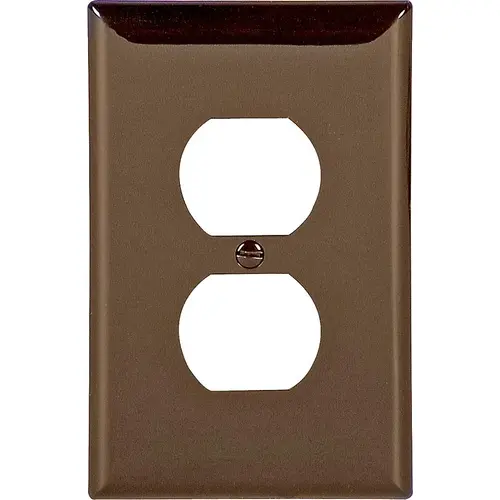 Virtually unbreakable, with high-structural rigidity, long-term form retention and impact and abrasion resistance. Screw-catch feature holds mounting screws captive. Matching screws provided. High-gloss finish is soil resistant. Mid-size 4-7/8 in x 4-15/16 in.