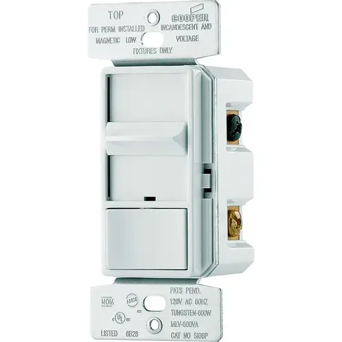 Eaton SI06P-W-K Dimmer, 120 V, 600 W, Halogen, Incandescent Lamp, 3-Way, White