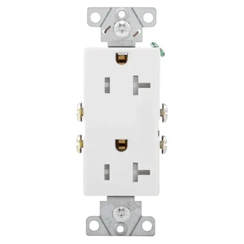 Eaton Wiring Devices Duplex Receptacle, 125 V, 20 A, 60 Hz Frequency, 2 Pole, 3 Wires, Back, Side Wiring, 14 to 10 AWG Wire, 5-20R, -20 to 60 deg C Operating, PVC, White