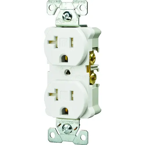 Commercial specification-grade straight blade receptacles. Tamper-resistant 20 A-125 V, NEMA 5-20R. Provides compliance with 2011 NEC Article 406.12 that states that all receptacles installed in dwelling units must be tamper resistant. "TR" designation provides visual identification.