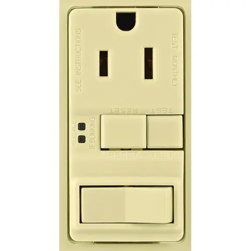 Eaton Wiring Devices GFCI Receptacle and Switch, 125 VAC, 15 A, 2 Pole, 3 Wires, NEMA 5-15R, Ivory, Dimensions: 4.19 in H x 1.2 in D