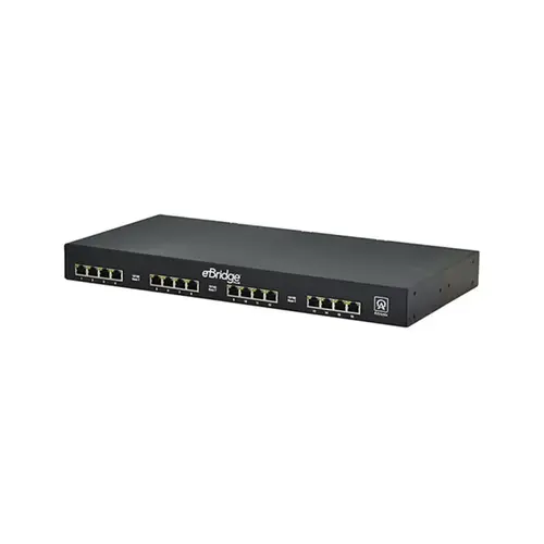 Altronix eBridge16PCRM is an sixteen (16) port rack mount EoC Receiver that transmits data and power over coax cable in a PoE compliant format. It is powered by a UL Listed limited power source such as a midspan or endspan. Unit passes PoE/PoE+ up the coax to an eBridge1PCT/ eBridge1PCTX transceiver. The transceiver in turn delivers that PoE compliant power to an edge device/camera. This plug and play unit facilitates system upgrades from analog to IP utilizing existing legacy Coax and eliminates the costs and labor associated with installing new network cabling. Data transmission and power over the Coax is possible up to 457m in comparison to 100m Ethernet distance (CAT5e). A maximum range from head end to the edge device/camera is 657m taking into consideration that up to 100m of structured cable may be deployed from the receiver to the network switch and the transceiver to the edge device/camera.