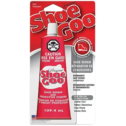 Shoe GOO is the No 1 shoe repair adhesive. It's ideal for fixing worn soles or damaged heels, coating shoes to prevent premature wear and sealing galoshes, waders or rubber boots. The unique formula is designed for strong abrasion resistance and better adhesion to flexible materials. Shoe GOO has been scientifically formulated to repair, seal and stick to a wide variety of materials with excellent strength to any other brand.