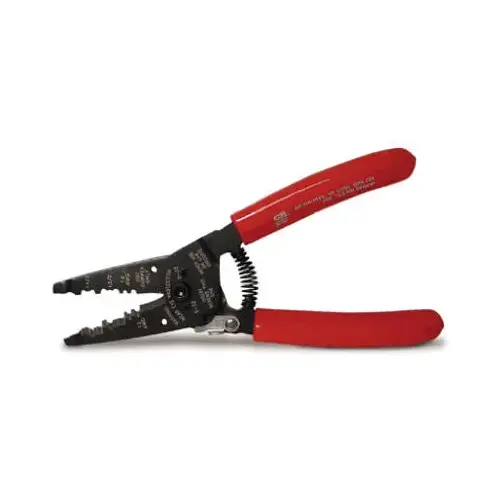 This handy multi-purpose nm cable stripper/cutter is able to strip both 12/2 and 14/2 AWG nm cable and 12-14 AWG single conductor cables in one tool. Designed with user comfort and convenience in mind this tool offers a power spring handle return to reduce hand fatigue and a locking handle for compact storage. The curved cutting blade makes for easy stripping and cutting while the built in wire looping holes and pliers nose for gripping wire make almost any electrical job a snap. Tool also incorporates the ability to cut and rethread bolts size 6-32 and 8-32. You'll find yourself reaching for this non-metallic cable stripper/cutter again and again.