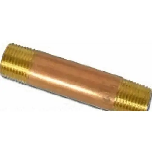 501-100510 2.5" x 18" Brass Nipple is made from solid, lead-free brass. Ideal to use with oil, natural gas, water. and gas lines. Contains male threaded ends that can connect to female fittings or pipes.