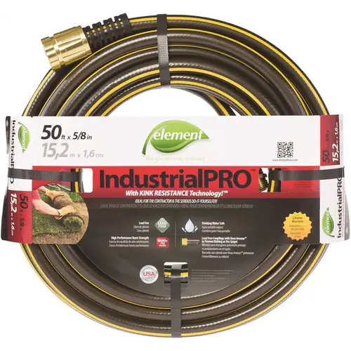 Element Industrial PRO is the ideal hose for the serious DIYer in the family or pro looking for a high performance 5/8 in. hose. The Super Duty female coupling works in any temperature with or without gloves on. Unique, Heavy-Duty construction and high kink resistance make this the perfect hose for the most challenging around the house jobs and construction environments. Available in multiple lengths, perfect for any application (50 ft., 75 ft. and 100 ft.). Element , ideal for the Contractor and the Serious Do-It Yourselfer.