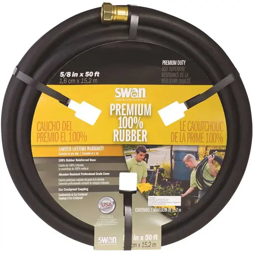 Hose is ideal for commercial jobs, allowing the length and power needed to handle a variety of jobs, also usable at home with easy to handle features. Twice as strong and 40% lighter than other standard rubber hoses, allowing years of use while it is flexible all the way down to -40°F and is hot water rated up to 165°F. Measures 50 ft. in length and 5/8 in. Dia, comes with a lifetime warranty.