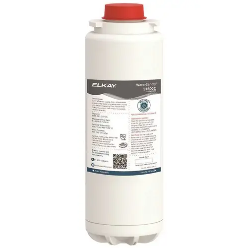 Elkay WaterSentry High Capacity Replacement Filter Replacement Filter For Elkay Enhanced Ezh2o Bottle Filling Stations. Largest capacity filter reduces filter changes and maintenance costs for healthy hydration without the hassle. Designed for use in highly trafficked areas; filter should be replaced every 6,000 gallons or 1 year after installation. Equipped with quick-disconnect, 1/4-turn installation, as well as automatic inlet shut-off valve that closes when filter is removed. Designed to reduce lead, cyst, particles and chlorine. Also reduces odors from incoming water. Filter is certified to NSF 42 and 53 for lead, cyst, particulate class 1, chlorine, taste and odor reduction. Mfg #51600C