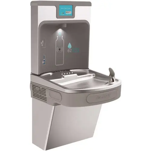 The Elkay EZH2O Bottle Filling Station delivers a clean quick water bottle fill and enhances sustainability by minimizing our dependency on disposable plastic bottles. Complete cooler and bottle filling station in a consolidated space saving ADA compliant design. Integrated look combines our Green Ticker and filter status lights. Features 3000 Gal. capacity WaterSentry Plus filtration with visual LED Filter Monitor to indicate when replacement is necessary. LED light showcases the bottle filling area so you know when a bottle is full. Automatic filter reset status-swap out your filter and the unit resets itself automatically.