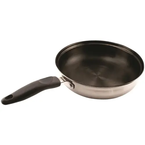 10" Classic Stainless Open Fry Pan with non-stick interior by Empire. Tri-Ply Stainless Encapsulated Base with Bakelite handle.
