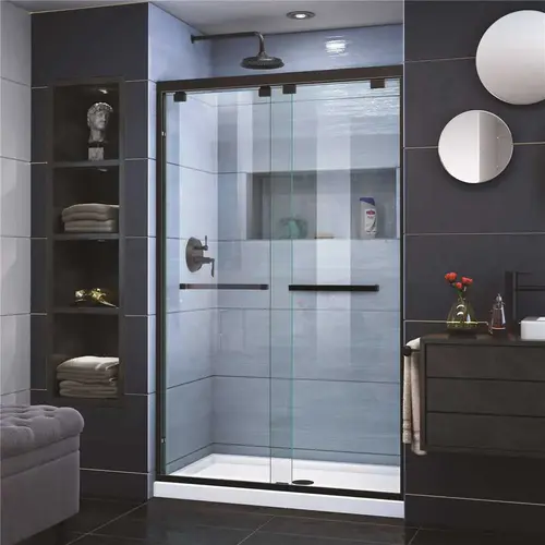 The DreamLine Encore bypass sliding shower or tub door has a modern frameless look to make your shower the focal point of the bathroom. Encore's elegant bypass design provides smooth and quiet sliding operation, with the added convenience of accessing your shower space from either side. Choose the Encore bypass sliding shower door to give your bathroom applause-worthy style. DreamLine has the ultimate solution for your shower project. Glass is treated with DreamLine exclusive ClearMax water repellant and stain resistant coating for superior protection and easy maintenance.