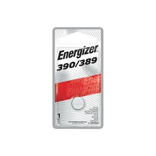 Designed for use on continuous low drain. Replaces 390, 189, LR1130, SR1130SW/W; Duracell D389, D391 and D393; Maxell SR1130W; Panasonic SP389; Sony SR1130W; Toshiba SR1130W; and Varta V389. 11.6 mm Dia x 3.0 mm H. 85 mAh to 1.3 V. 1.55 V, carded.