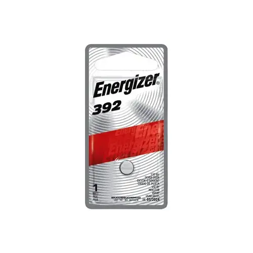 Designed for use on continuous low drain. Replaces LR41, 192, 384, SR41SW/W; Duracell D392, Energizer 392, Goldpeak 392, Maxell SR41W, Panasonic SP392, Rayovac 392, Renata 392, Sony SR41W, Timex K, Toshiba SR41W and Varta V392. 7.9 mm Dia x 3.6 mm H. 41 mAh to 1.3 V. 1.55 V, carded.