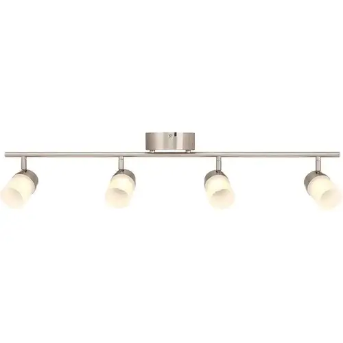 The Skyline series of integrated LED fixed track lights features a timeless brushed nickel finish that will enhance most interior decors. Illuminate your living room, great room, dining room, or other common area with 2,000 lumens of warm, soothing light at 2700K CCT. The four heads rotate and pivot to ensure maximum coverage, and work with a standard dimmer to create just the right ambiance.