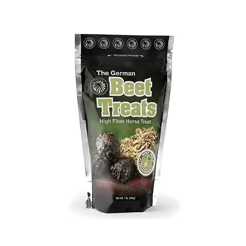 High Fiber Horse Treat with Beet Pulp, the #1 ingredient. German Beet Treats are a perfect addition to your horse's regular diet and no soaking is required; feed them right out of the bag. These muffins are dry and firm.