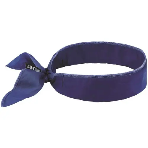 Ergodyne 6702 Solid Blue Cooling Bandana Embedded Polymers Tie Top No Slime Polymer Technology Water-Absorbing Polymer Crystals Are Embedded In Bandana Material And Will Not Ooze Or Become Slimy LIGHTWEIGHT COOLING Batting material minimizes uneven expansion of polymer crystals when wet for cooling without the bulk EASY ACTIVATION Soak in cold water 2-5 minutes to activate, no ice or refrigeration needed LONG-LASTING COOLING Remains cool for up to 4 hours to help reduce effects of heat stress ONE SIZE FITS MOST Tie-back to ensure a close fit to the head, neck or wrists CARE INSTRUCTIONS Hand wash only and store by hanging in the open air until completely dry Mfg #12399