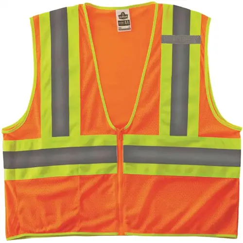 Ergodyne 8229Z L/XL Orange Class 2 Economy Two-Tone Vest - Zipper Ansi/isea 107-2020 Polyester Mesh (3.3oz.) Zipper closure 2" reflective material that meets ANSI/ISEA 107-2020 visibility requirements Reflective set on 4.5" contrasting color background Pockets: One inside Mfg #21305