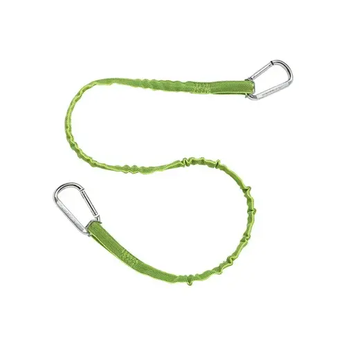 The Ergodyne 3110 Squids Dual Carabiner Tool Lanyard tethers tools to help prevent worker injury, damage and lost productivity from dropped tools. It has an energy absorbing cord with a tubular nylon webbing and is 35 in. - 42 in. Has lock stitching at both ends for extra security.