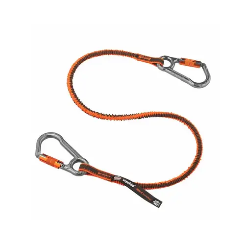 The Ergodyne Squids 3118F(x) Dual Locking Carabiner Tool Lanyard tethers tools to help workers prevent injury, damage and lost productivity from dropped tools. This shock absorbing tool lanyard features a locking carabiner on each end. Ergodyne's 3118F(x) tool lanyard offers a 15 lbs. capacity to prevent falling objects and to reduce the force on your body if a drop occurs.
