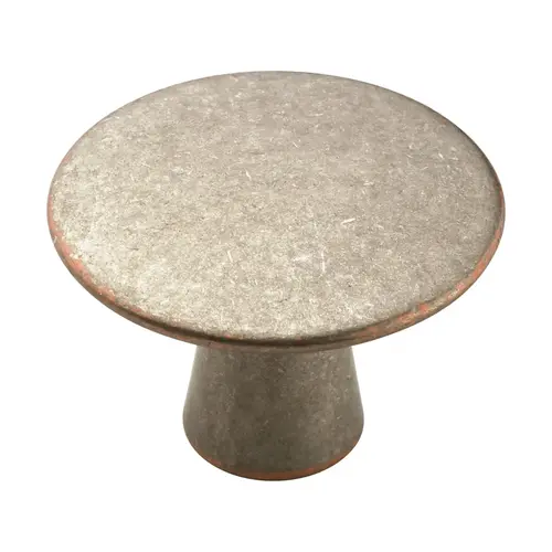 The Amerock BP24001WNC Essential'Z 1-9/16 in (40 mm) Diameter Knob is finished in Weathered Nickel Copper.