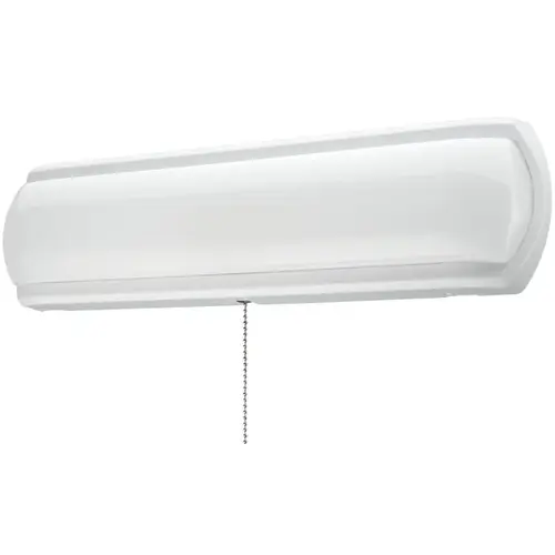 ETI Closet Light with Pull Chain, 120 VAC, Wattage Rating: 16 W, Lamp Type: LED, Average Life: 50000 hr, Color Rendering Index (CRI): 80, Beam Type: Wide, Beam Angle: 110 deg, Color Temperature: 4000 K, Lumens: 1200, Ballast/Driver Type: Dimmable, Temperature Rating: -4 to 113 deg F, Fixture Color: White, Dimensions: 18 in L x 4.3 in W x 2 in H