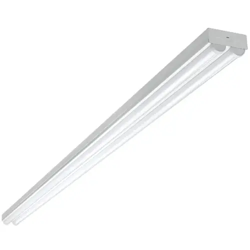 8 ft linkable strip light, direct wire or plug in connection. 90W, 9000 Lumens, 4000K. Link up to 10 fixtures on one electrical connection. The 8 ft strip can be installed flush with ceiling or as pendant.