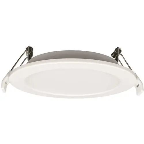 ETI Altair 4" Canless Downlight, Triac Dimming, Select CCT, 120V, 10W, White. Five Color Temperatures: Warm White 2700k, Soft White 3000k, Cool White 3500k, Bright White 4000k And Daylight 5000k. 800 Lumens of brightness using 10-Watts of electricity. 120 Volt. Dimmable down to 10% - Use compatible LED dimmer switches such as LUTRON: DVCL-153PR-WH, LEVITON: R62-06674-POW. Suitable for wet locations such as bathrooms and showers. Insulation rated for maximum thermal management. Construction: Durable die-cast aluminum low profile trim with 1/4" surface profile. Optics: High impact, polymer diffuser lens for zero pixelation and overall visual comfort. Installation: Two low-profile spring retention clips for a secure fit-no need for a separate recessed housing or junction box. Minimum 2in. plenum space required to install the remote driver box. Operating Temperature: -4 degreeF to 104 degreeF. Maintenance free with no bulbs to replace. Rated life up to 110,000 hours. 5 year warranty. Mfg #63322101
