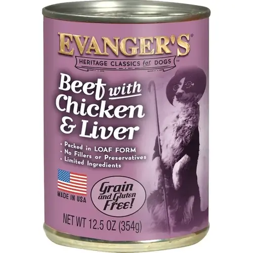 Evangers Dog Food H10105 Heritage Classic Beef w/ Chicken & Liver, 12.5 oz Can