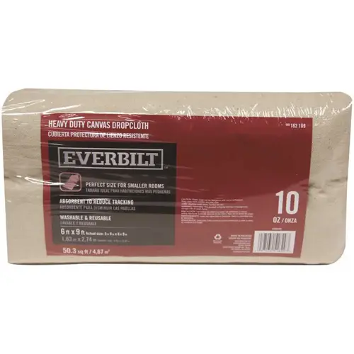 Protect your belongings while painting and cleaning with the Everbilt 6 ft. x 9 ft. Heavy Duty Canvas Drop Cloth. It is made of super-absorbent canvas with double-stitched hems for durability. This drop cloth also offers cushioning to prevent dings and dents on the covered surfaces.