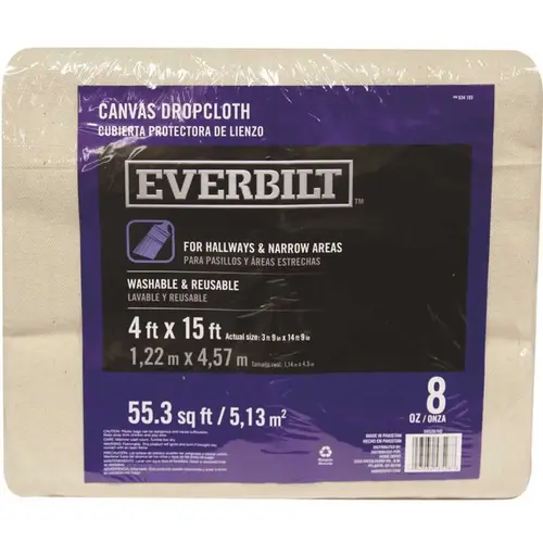 Protect your belongings while painting and cleaning with the Everbilt 4 ft. x 15 ft. 8 oz. Heavyweight Canvas Drop Cloth Runner. It is made of high-quality canvas that absorbs spills and keeps paint from tracking. This washable and reusable drop cloth is the perfect size for halls and narrow areas.