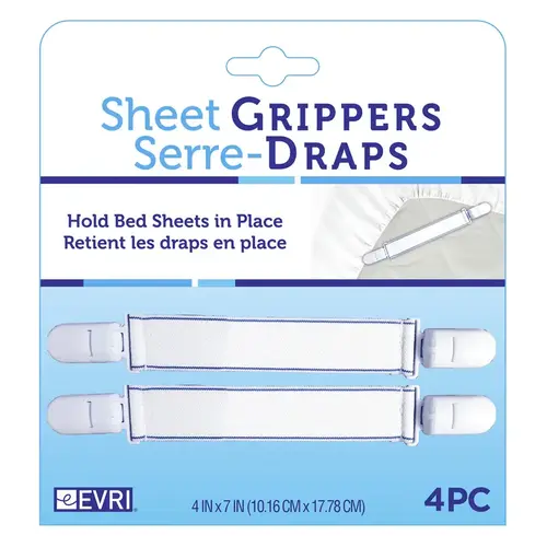 Holds any sheet tight all night long! Perfect for use on blankets, mattress pads, slip covers, tablecloths, tarps, indoor/outdoor uses. Adjustable elastic fasteners grip any fabric for a snug & tight fit. Grips practically any thickness of fabric without damaging the material. Comes in a set of 4 straps.