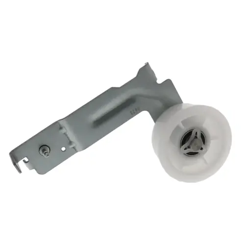 Idler assembly DC93-00634A includes the idler arm and the idler pulley that maintains tension on the drive belt, allowing the belt to turn. Installation is under 1-hour. Disconnect the power before installing this part.