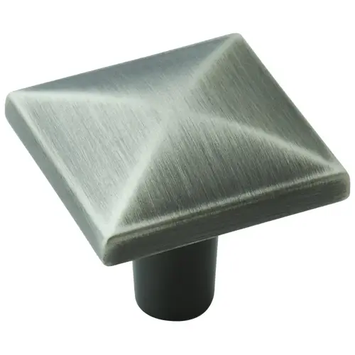Amerock Extensity Cabinet Knob, Zinc, Antique Silver, 1-1/8 in L x 1-1/8 in W, Projection Size: 1-1/16 in, Base Dimensions: 5/16 in Dia, Includes: #8-32 x 1 in Truss Head Machine Screw