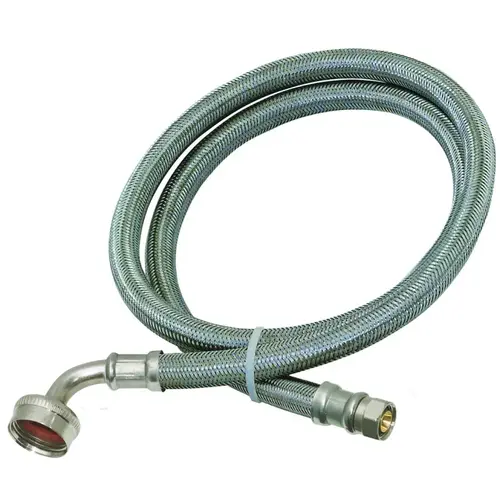Hose with nickel-plated brass nuts. Complies with no-lead laws. 3/8 in comp x 3/4 in female hose thread.