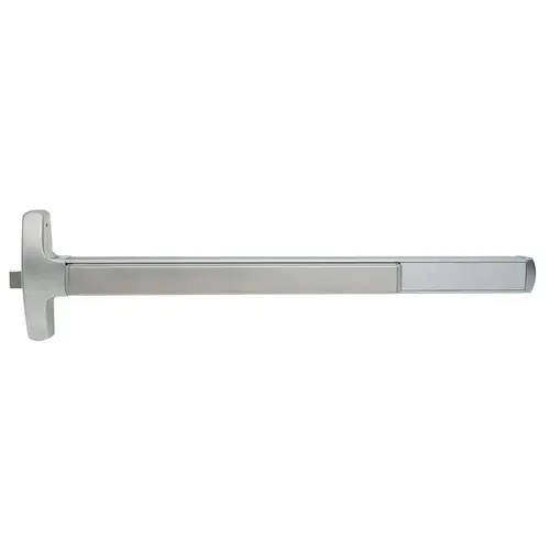 Grade 1 Rim Exit Bar, Narrow Stile Pushpad, Fire-Rated Device, 4' Door Width, Night Latch Function, Sutro Lever with Escutcheon, Electric Latch Retraction, Satin Chromium Plated Finish, Left Hand Reverse