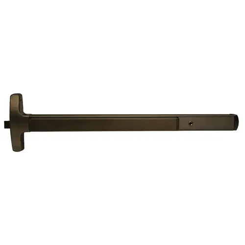 Grade 1 Rim Exit Bar, Narrow Stile Pushpad, 3' Door Width, Passage Function, Quantum Lever with Escutcheon, Electric Latch Retraction, Request to Exit Switch, Hex Key Dogging, Aged Bronze Finish, Left Hand Reverse